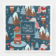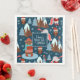 Add a cute seasonal touch to your holiday kitchen dining table decor with this adorable custom blue and white Christmas paper napkin. Paper napkin a pattern of a festive brown bear ice skating, an owl wearing a Santa hat and glasses, a bird on a snowy mountain, a bunny playing a trumpet, and Christmas trees in the snow. Centre text says I don't know let it snow. Add your family last name for a personalised touch.