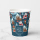 Add a cute seasonal touch to your holiday kitchen dining table decor with this adorable custom blue and white Christmas paper cup. Paper cup has a pattern of a festive brown bear ice skating, an owl wearing a Santa hat and glasses, a bird on a snowy mountain, a bunny playing a trumpet, and Christmas trees in the snow. Centre text says I don't know let it snow. Add your family last name for a personalised touch.