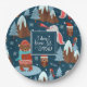 Let it Snow Cute Animal with Name Blue Christmas Paper Plate
