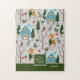 Add a cute seasonal touch to your holiday game collection with this adorable custom green and white jigsaw puzzle. Puzzle has a pattern of a festive reindeer in a cosy sweater, a bird, houses, holly berries, and Christmas trees in the snow. Centre text says I don't know let it snow. Add your family last name or a first name for a personalised touch.