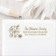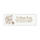 Elegant and classy return labels for Christmas (Xmas) Holiday greeting cards. Gold letters LET IT SNOW with snowflakes. Modern letters for family name and address. Letter colour and font can be changed. Background colour is white but can be changed to any colour.