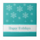 Whimsical and fun Let it Snow Holiday Tile in turquoise featuring a cascade of hand drawn snowflakes. This fun decorative tile would make a wonderful holiday gift. Easy to customise, simply add the personalised text of your choosing.