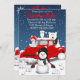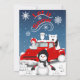 This design features the nostalgia of a vintage red truck with some Arctic animals and a snowman in a wintry scene.