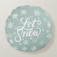 Let It Snow Mint Green White Snowflakes Holiday Round Cushion