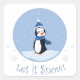 A penguin wearing a blue hat and scarf stands in the snow and watches the snowflakes fall. This design is available on multiple products including shirts, mugs, pillows, and more! It can be customised or personalised by adding your own text or images!