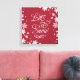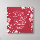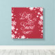 Elegant winter seasonal canvas art design features "Let it Snow" design in a beautiful white script writing with a modern snowflake patterned border. The red background color can be customized to coordinate with your holiday decor.