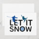 Text reads "Let it Snow" in bold font with silhouettes of a skier, snowboarder and a snowflake in shades of blue. For the cool guy on your Christmas card list.
