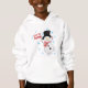 This is an adorable kids hoodie featuring a snowman dancing in the snow with the words "Let it snow".