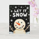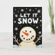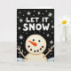 This cute picture shows a snowy scene with a hand-painted snowman on a dark background. At the top, it says "LET IT SNOW" in big, uneven white letters that make you feel happy. Below, the snowman is kind, with a soft, creamy color and a textured look as if it were made carefully by someone. The dark sky behind it is full of bright white snowflakes that make it look lively and calm, like a peaceful winter night.