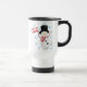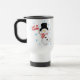 This is a fun winter themed mug featuring a snowman dancing in the snow wearing a hat and scarf, with the words "Let it snow".