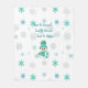 Let It Snow white and Teal Snowflakes and snowman Cosy Christmas holiday gift blanket.