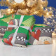 A snowman holding a let it snow sign. This design looks really effective on these Wrapping Paper