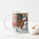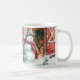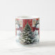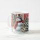 Charming Snowman and his Westie with a red barn on a snowy day; this snowy winter mug will make cold days a lot warmer. This is a mug you'll use from the first snow to the last. Dishwasher and microwave safe.