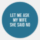 Let Me Ask My Wife She Said No Funny Husband Classic Round Sticker