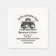 "let the adventure begin" vintage script with paired illustration of a car on the road and all information in complementary font ready for easy customisation.