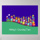 Adorable train illustration. Each car is packed with different number of colourful items, from 1 to 10. Replace placeholder text to personalise.