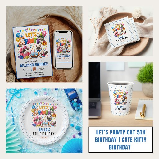 Let’s Pawty Cat 5th Birthday | Cute Kitty Birthday Invitation