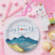 Let The Adventure Begin Blue Gold Mountain Wedding Paper Plate