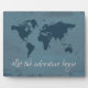 Let the adventure begin text design with world map decoration on grunge, blue background