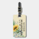 Let the adventure begin features watercolor sunflower eucalyptus greenery on yellow luggage tag with personalised info.