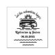 "Let the adventure begin" vintage script with paired with a car on the road illustration and all information your in a complementary font ready for easy customisation. Check our store for more rubber stamp options.