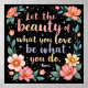 Inspirational Rumi Quote " Let the beauty of what you love be what you do" framed by beautiful and colourful floral elements, stars and sparkles of light.