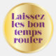 Laissez bon temps rouler/ Let the good times roll Mardi Gras text design in purple on a gold background.