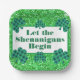 Let the Shenanigans Begin green sparkle clover Paper Plate