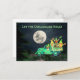 This Let the Shenanigans Begin St. Patrick's Day Holiday Postcard features a truck full of Irish Gnomes driving, through the backwoods with a full moon, celebrating St. Patrick's Day. - by Irish Gear and Gifts