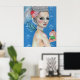 Let them eat cupcake is an original painting of Marie Antoinette as Faerie Godmother. Let them eat cupcake. She's standing on front of a french blue wall with fleur de lys, she's dressed in pearls, feathers and roses, with her hair in a pompadour. She's holding a cupcake dotted with tiny red love hearts and a cherry.