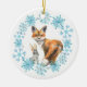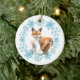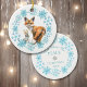 This heart warming Christmas ornament has a pretty blue snowflake wreath which frames watercolor images of a red fox and little bunny. The back of the ornament has the same blue wreath with the text in matching blue "Let there be PEACE". Two more text fields are for your customisation, with a silver snowflake serving at the middle as a divider.