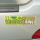 Go Green with this bumper sticker that carries an important message. Let Treedom Ring. Show your love for the environment as you travel down the road. Branch out and spread the message. We need our trees.