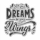 Inspirational lettering design says "Let Your Dreams Be Your Wings.”