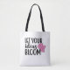 This tote bag features an inspirational quote "Let Your Ideas Bloom" and 3 pink flowers.