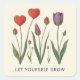 Let Yourself Grow Floral Heart Tulips Art Square Sticker
