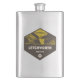 The product is a good size and came exactly as it was pictured. The lid is not attached to the flask, which could be dangerous on drunken nights... The print came out surprisingly well and looks very sharp. Would definitely recommend.