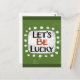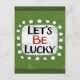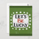 "Let's Be Lucky" is a cute text design with a white accent shape surrounded by white textured whimsical dots.