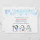 A delightful winter-theme invitation perfect for a child's birthday celebration. The white card has a snowflake canopy and features three adorable snow characters in front and one that's melting in the back.