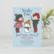 A charming, winter-theme invitation to a children's birthday celebration. The card features a girl and boy building a snowman with light snow. The words "Winter time" are pre-printed. (<a href='http://www.freepik.com/free-vector/background-of-children-enjoying-the-winter_1041004.htm'>Designed by Freepik</a>). <br/><br/>The card is easy to customise with your wording, font, font colour, paper shape options and choice of six paper types.<br/><br/>Not exactly what you're looking for? All our products can be custom designed to meet your needs at no extra charge.<br/><br/>Simply contact us at askcottonlamb@gmail.com.<br/><br/>Coordinating products available: Just ask us!