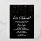 This Let's Celebrate Gold Confetti on Black Birthday Party gold foil invitation is perfect for a classy birthday celebration for an adult or child. The design features trendy real gold foil confetti and elegant white calligraphy on a black background.
