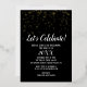 This Let's Celebrate Gold Confetti on Black New Year's Eve party gold foil invitation is perfect for a classy New Years Eve celebration. The design features trendy real gold foil confetti with elegant white calligraphy on a black background.