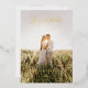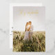 ´´ Let´s celebrate´´ your special day, may it be a wedding or anniversary, with this modern and elegant gold foil invitation! The front of the invitation features a full vertical photo and gold foil text in a mix of whimsical contemporary calligraphy and elegant typography: ´´Let´s celebrate´´ on the top, names and -occasion- on the bottom. Please mind that the best picture to work with would be the one with either light or dark background, so the text is more visible. The back of the invitation includes all important details like names, time, and the location of the celebration written in black on a clean white background. There is also a motif of floating delicate dandelions to illustrate your wish coming true! You can easily customise this template by clicking on the ´´ Personalise this template´´ button and changing all details.