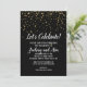 Let's Celebrate Gold Confetti on Black Engagement Invitation