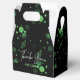 A modern, stylish and glamourous birthday favour box. This design features a vibrant typography "Thank You" with green gradient bokeh on a black background. Personalise and add your party details.