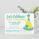Invitation features an original marker illustration of a green, blue and yellow polka dot party hat, with LET'S CELEBRATE in a fun font. Ideal for a birthday party, New Year's Eve, or other celebration.