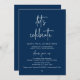 Mark the beginning of your forever with elegance using our contemporary modern minimal navy blue theme wedding elopement brunch / lunch / dinner and dancing celebration invitation card, "let's celebrate". Perfect for couples extending their joyous occasion, this invitation exudes sophistication with a hint of playfulness, setting the stage for a memorable event. Adorned with a timeless modern script design theme, it adds a touch of refined charm to your festivities.