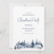 Celebrate the season with a festive Christmas party invitation featuring a seamless border winter landscape in watercolor element design, Christmas party phrase in hand lettering navy blue, personalised Christmas detail in navy blue with simple and modern typography, and a white background design colour.