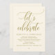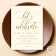 Mark the beginning of your forever with elegance using our contemporary modern yellow gold themed wedding elopement celebration invitation card, "Let's Celebrate", brunch, lunch, dinner, party and dancing. Perfect for couples extending their joyous occasion, this invitation exudes sophistication with a hint of playfulness, setting the stage for a memorable event. Adorned with a timeless modern script design theme, it adds a touch of refined charm to your festivities. Crafted by TeeshaDerrick, this invitation promises to beautifully capture your love story.