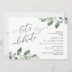 Beautiful Modern Romantic Design, in eucalyptus leaves greenery watercolour themed, Wedding Rehearsal Dinner and Dancing Invitation card (Let's Celebrate). This is perfect for your wedding rehearsal dinner celebration party. Add your celebration details.