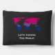Accessory Poach with bisexuality pride flag stripes on map of world, rainbow pride design, Let's Change the World template text, by pinkbrickroad